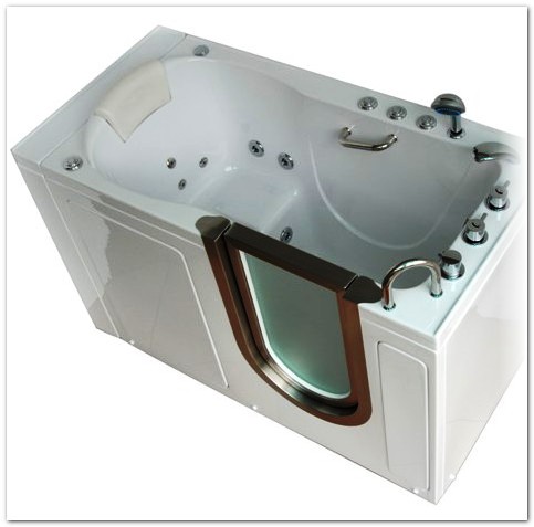 • Walk-in Tubs: Walk-in bathtubs are a great choice for those who are only mildly restricted in mobility or who require the therapeutic benefits of hydrotherapy for sports or other injuries. The tub has a door which allows for a comfortable and safe access and a generous seat to ensure a comfortable and secure bathing experience. For persons with disabilities who are able to mobilize without a wheelchair, the walk-in bathtub is often preferred to an accessible shower for the home.