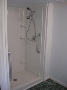• Curb-less showers to allow smooth, safe transfer from wheelchair or walker to shower chair